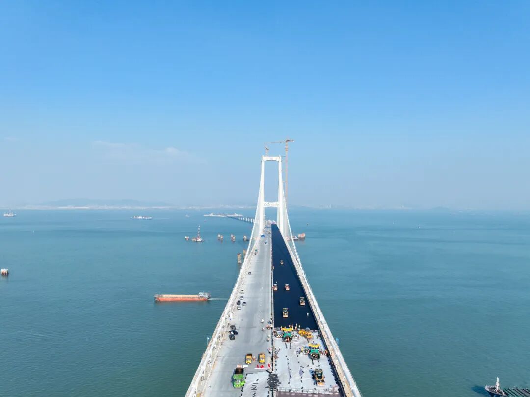 深中通道伶仃洋大桥钢桥面单日铺装面积超过2.5万平方米